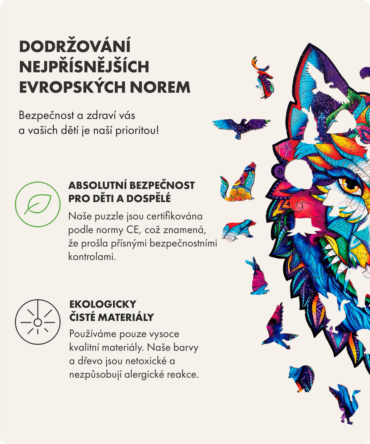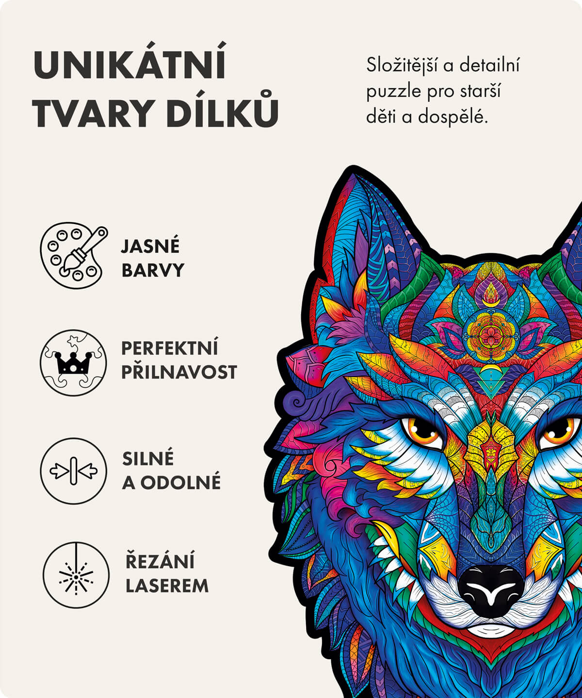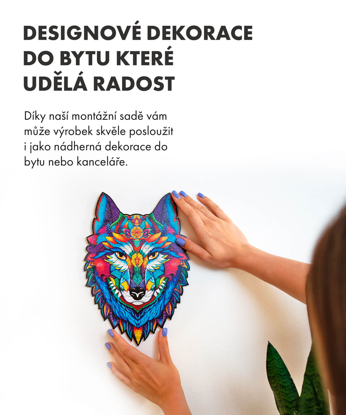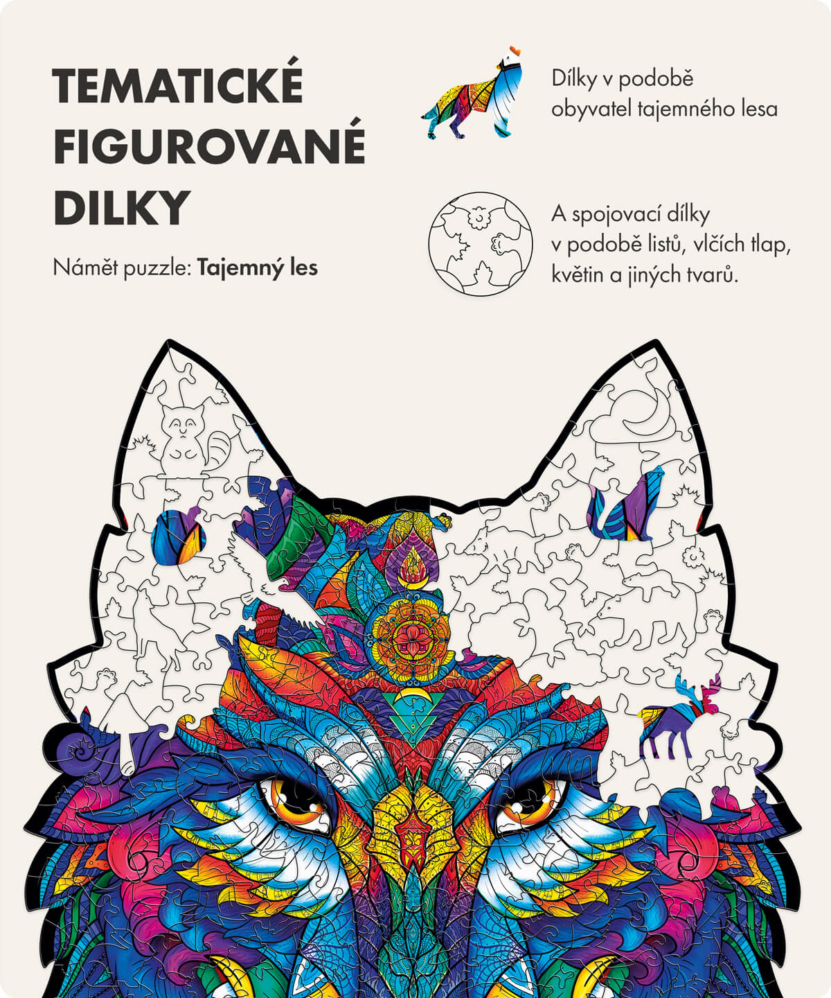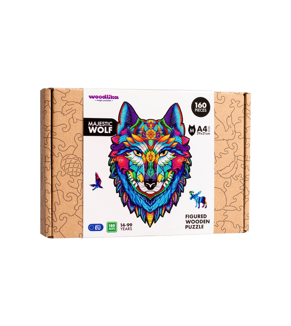 Majestátny vlk sú drevené puzzle, ktoré sa skladajú z 3000 dielikov a sú vhodné pre deti od 14-99 rokov. Jednotlivé dieliky majú rôzne tvary tajomného lesa..